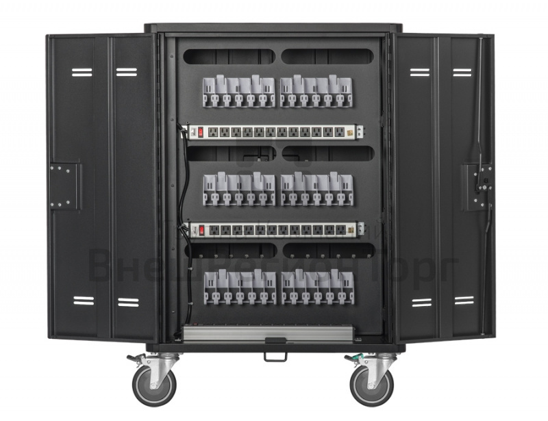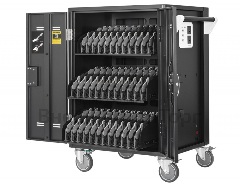 - Ваши устройства будут надежно защищены благодаря прочной раме и стальным дверцам сейф-тележки. Дверцы снабжены трехпозиционным запорным механизмом. Сверхпрочная конструкция тележки гарантирует эффективную защиту ваших устройств от любых угроз воровства или вандализма.
