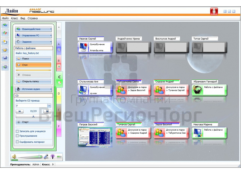 - Полное управление персональными компьютерами учащихся с рабочего места преподавателя