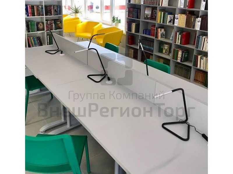 Стол для читального зала модульный. Позволяет максимально компактно и при этом комфортно расположить читателя, перегородка между столами также способствует комфорту, разделяя личное пространство посетителей на удобные зоны.