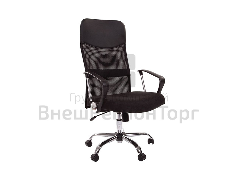 Кресло CHAIRMAN (ткань, сетчатая спинка, хром.каркас), цвет черный