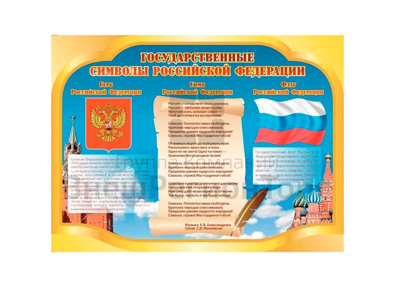 Подробное описание Стенд Государственные символы Российской Федерации, 650*480 мм