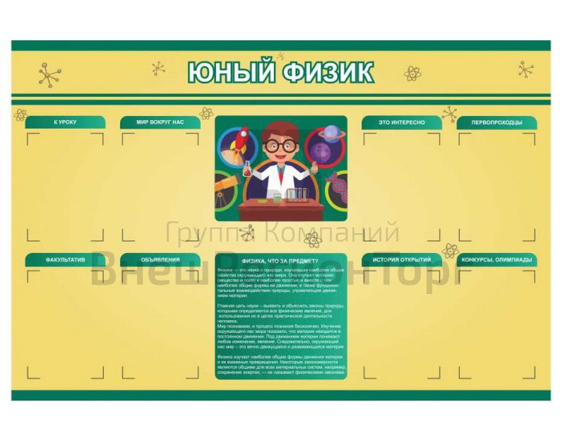 Подробное описание Стенд Юный физик 150х100 см