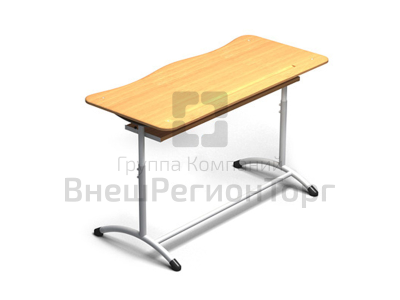 Двухместная современная парта с закругленными углами, с полочкой и регулируемая по высоте. У парты закругленные углы, эргономичный вырез для более удобного размещения за столешницей двух человек. Имеется ложемент для карандашей и ручек.