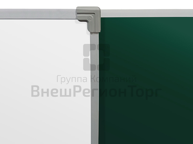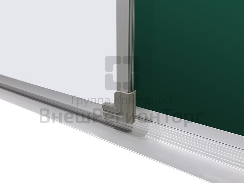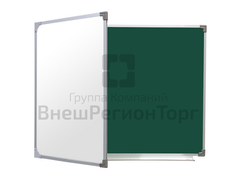 Комбинированная Двухэлементная магнитная доска с 3-мя рабочими поверхностями, совмещает в себе преимущества сразу обоих видов поверхностей досок - меловая и маркерная поверхности.