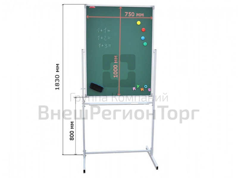 Подробное описание Доска меловая одноэлементная передвижная 100х75 см, поворотная