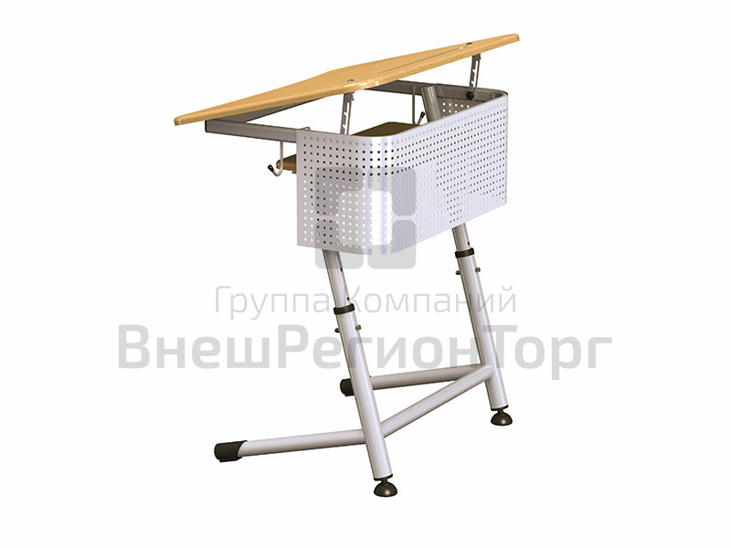 Одноместная парта с регулировкой по высоте перфорированым экраном и полочкой. Столешница имеет эргономичный вырез со стороны посадки ученика и желобком для карандаша. Рабочая поверхность обтянута пластиковой пленкой ПВХ, методом постформинга на профессиональном вакумном прессе.