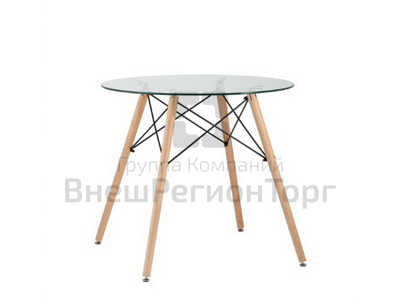 Подробное описание Стол круглый, стеклянный на дер. ножках