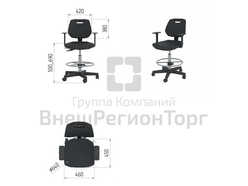- Газлифт (регулировка высоты сиденья 500-690 мм);