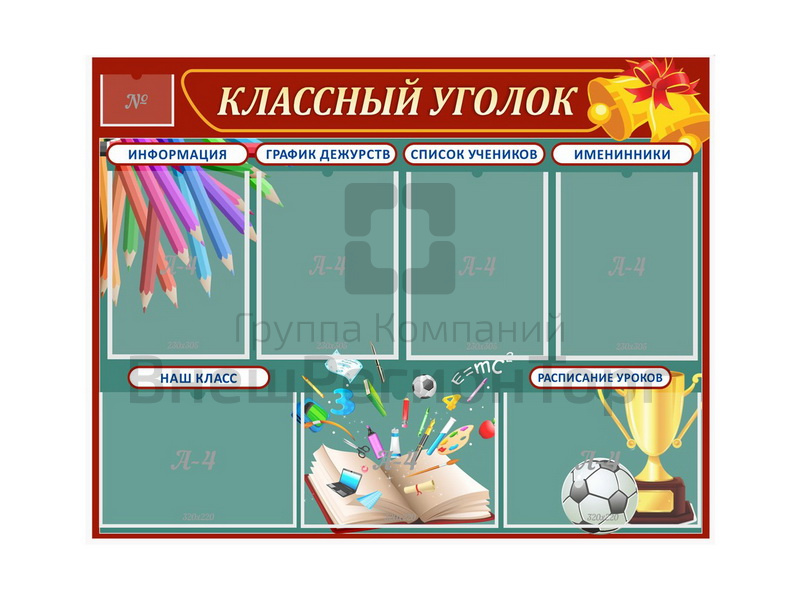 Подробное описание Стенд "Классный уголок" с 7 карманами