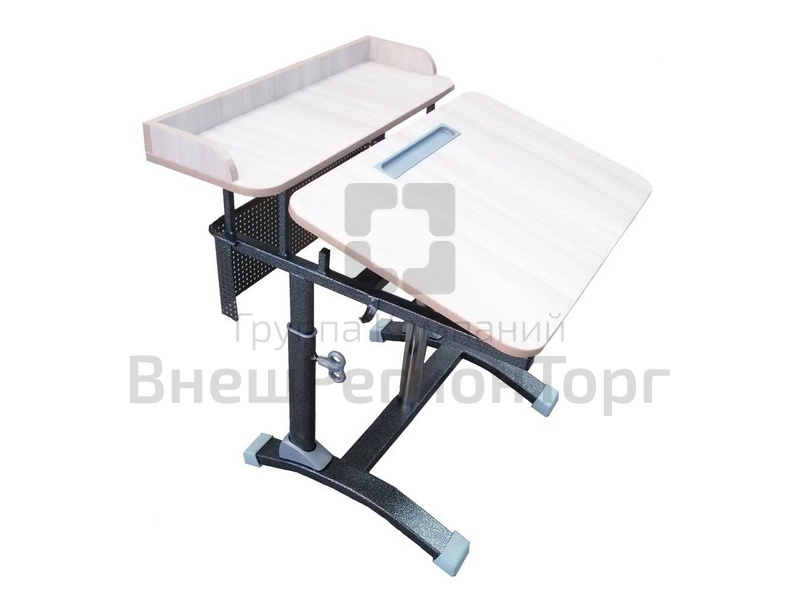 Особенности: Группа роста изменяется запатентованным механизмом полуавтоматической регулировки высоты при помощи газового лифта, регулировка угла наклона столешницы, пластиковые детали цветные, крючки, перфорированный фронтон, две столешницы, бортики.