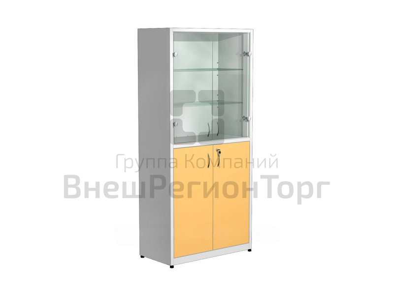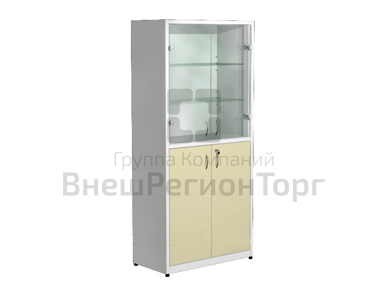 - Наполнение верхней секции: 2 дверки стекло, ручки, 2 регулируемые полки - стекло.
