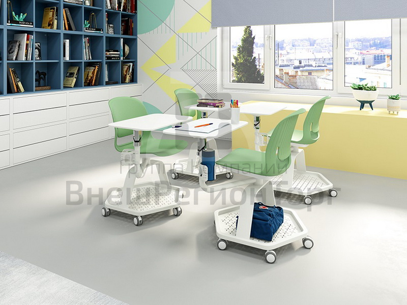 Для рюкзаков и предметов, которые не нужны во время занятий под сиденьем есть специальное место. Кроме того, стул оснащен складным столиком, на котором удобно расположить ноутбук или другие мобильные устройства, а также различные учебники и тетради. Он полностью регулируется и имеет шарнирную форму, что обеспечивает комфорт и одинаково подходит как для правшей, так и для левшей.