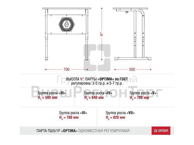 Подробное описание Одноместная парта Optima, регулируемая про росту (цвет в ассортименте)