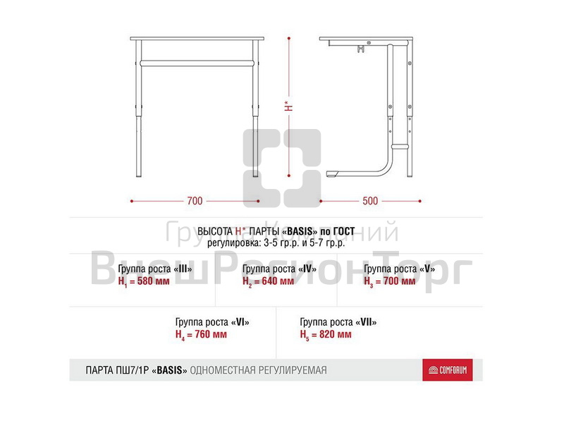 Подробное описание Одноместная парта Basis, регулируемая по росту (цвет в ассортименте)