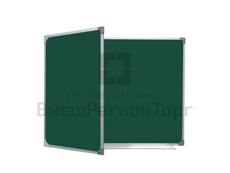 Двухэлементная магнитно-меловая доска с 3-мя рабочими поверхностями, 2 с разлиновкой. Открывающаяся створка расположена слева.