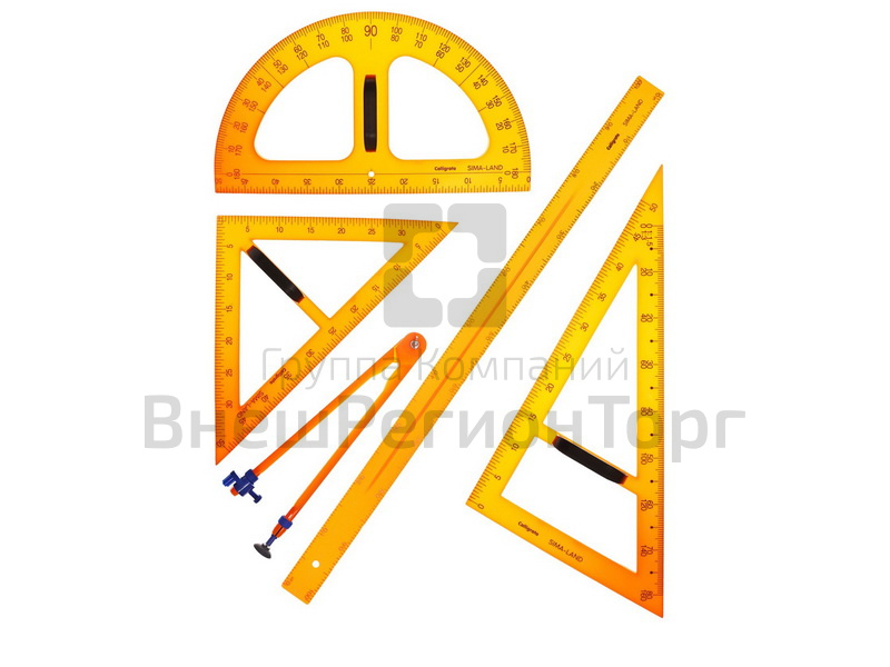 Набор используется для чертежных работ на классной доске. Материал - пластик.
