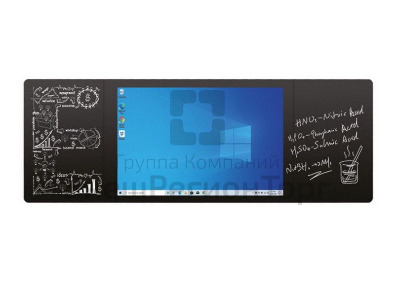 Интерактивный комплекс, состоящий из интерактивной панели и двух стационарных черных меловых досок.