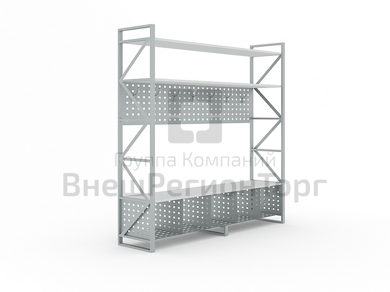 Вешалка односторонняя с открытой тумбой с перфорированными полками