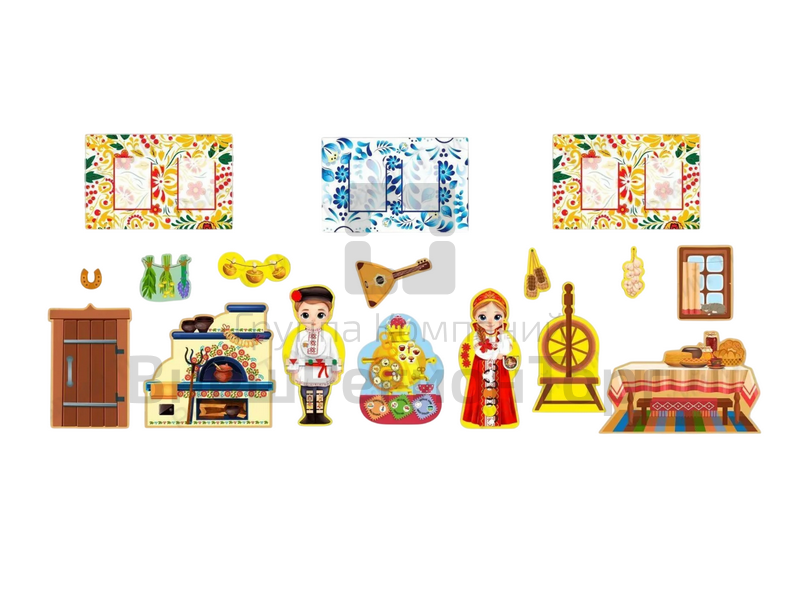Рекреационная зона "Мы из России" созданна для оформления и развития рекреационно-образовательных зон (РОЗ) и предметно-пространственной среды (РППС) в детских садах. Комплект включает разнообразные бизиборды и декорации, которые помогут воспитателям познакомить детей с традиционным русским бытом и историей России. Все элементы безопасны для детей, гипоаллергенны и выполнены из экологически чистых материалов.