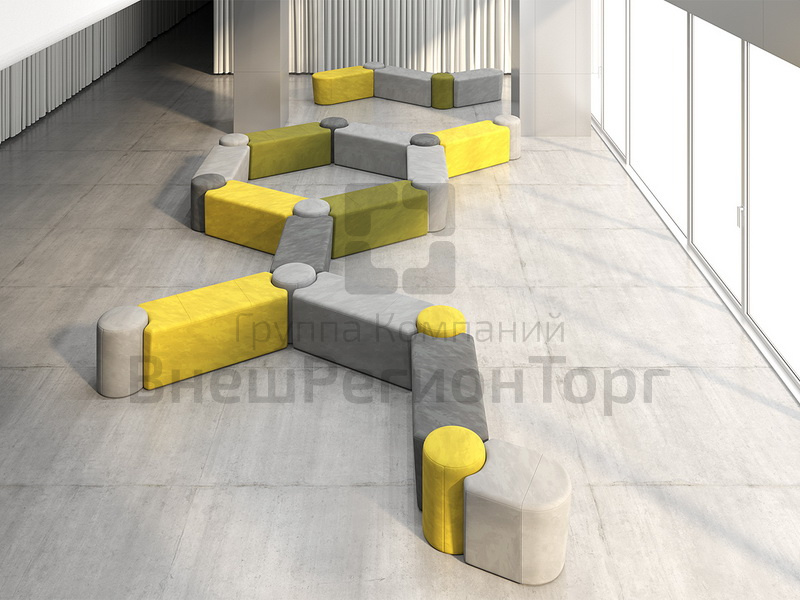Диваны из этой коллекции отличаются сочетанием минималистичного внешнего вида и модульности. Множество вариантов расстановок, легкость в перемещении за счёт отсутствия креплений между модулями, геометричные формы - все это о коллекции диванов МОЛЕКУЛА, которые были разработаны специально для просторных холлов, больших залов торговых комплексов и других открытых пространств.