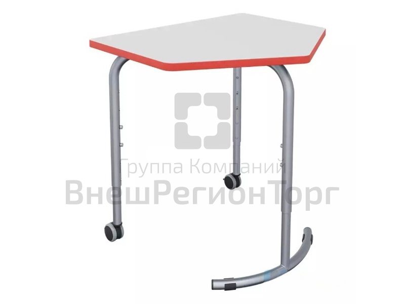 Стол мобильный модульный трапециевидный, выполнен из металлического каркаса и столешницы из ЛДСП, каркас стола выполнен из цельнометаллической трубы, сечением 32*32 мм, столешница из ЛДСП не менее 22 мм, облицован антивандальной кромкой из ПУ. Каркас не сборно-разборный, а цельносварной, тем самым обеспечивает надежную конструкцию, исключает качание стола. Снабжен 2-мя колесами для удоства перемещения стола.