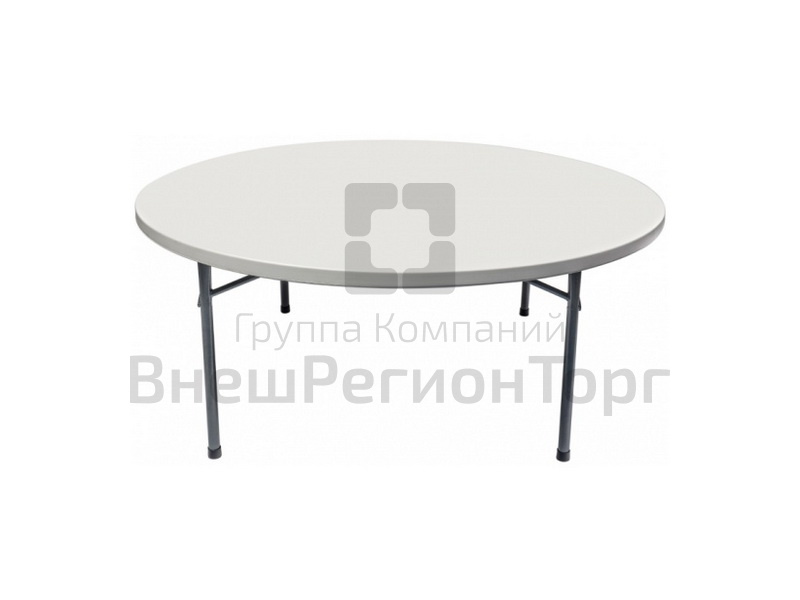 Стол круглый, 150х74 см. Столешница: пластик, 5 см. Каркас - металлическая труба 32х1 мм. Упаковка - белый картон, по 1 шт. в коробке.
