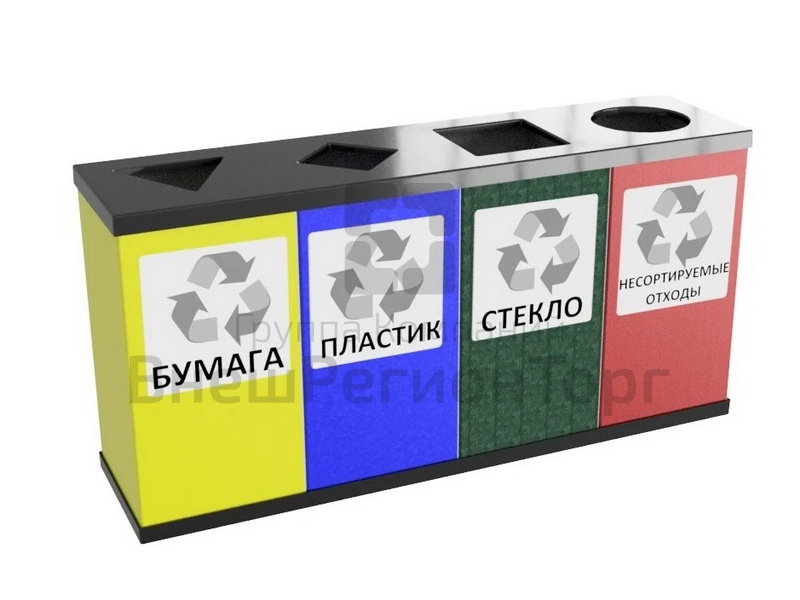 Урна дляраздельного сбора мусора полностью разборная и занимает минимум места при транспортировке и хранении. В конструкции урны предусмотрены 4 отдельных секциииз оцинкованной стали с полимерным покрытием, что позволяет сортировать мусор.