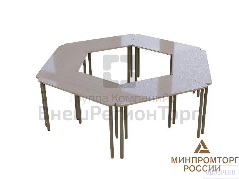 Стол модульный трапеция, регулируемый (м/к диам.28 и 32 мм, обвязка 40*20 мм, ЛДСП 16 мм, кромка 2 мм) с колесами со стопорами.