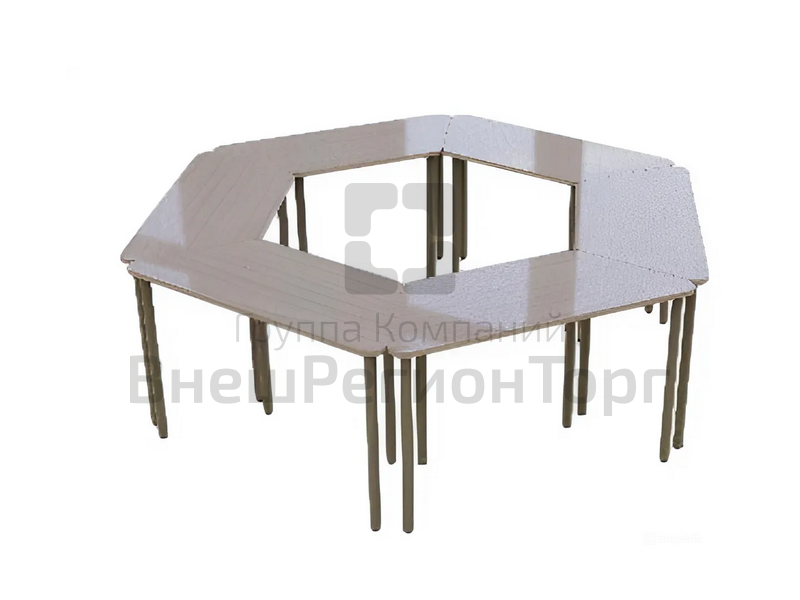 Стол модульный трапеция, регулируемый (м/к диам.28 и 32 мм, обвязка 40*20 мм, ЛДСП 16 мм, кромка 2 мм) с колесами со стопорами.