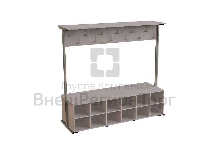 Вешалка двухсторонняя с тумбой на 24 места (м/к 25*25 мм, ЛДСП 16 мм).