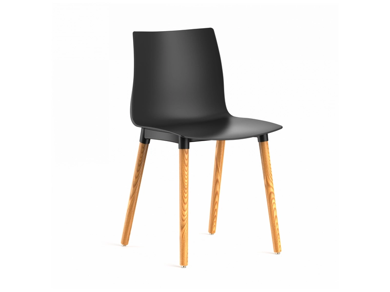 Каркас спинки выполнен из полипропилена с армированием стекловолокном, что обеспечивает комфортную посадку и стабильную форму при ежедневной эксплуатации. Дубовые ножки придают конструкции надёжность и визуальную теплоту. Конструкция рассчитана на нагрузку до 120 кг, поэтому стул служит долго и не требует частой замены в общественных помещениях.