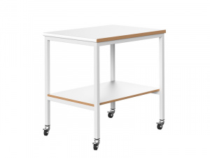 Стол передвижной лабораторный металлический. Размеры 800х600х800 мм. Каркас стола цельносварной и изготовлен из металлической профильной трубы квадратного сечения 30х30х1,5 мм. Металл покрывается химически стойкой эпоксиполиэфирной порошковой краской отверждаемой в печи. В стандартной комплектации каркас стола окрашен в белый цвет.