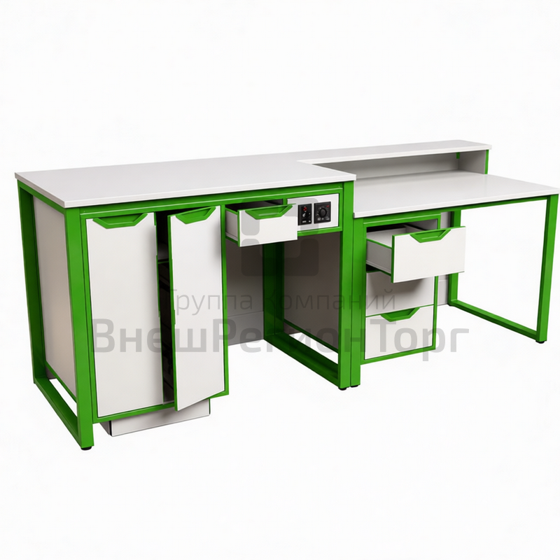 Подробное описание Стол демонстрационный на м/каркасе для кабинета химии/биологии без сантехники с розетками