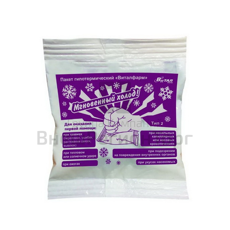 Предназначен для оказания первой помощи при ушибах, вывихах, переломах, возникновении воспалительных процессов, тепловых ударов, при укусах насекомых, при ожогах, при несильных капиллярных или носовых кровотечениях, при подозрении на повреждения внутренних органов. Лечение холодом у пациентов с нарушением кровообращения применяется только при разрешении врача.