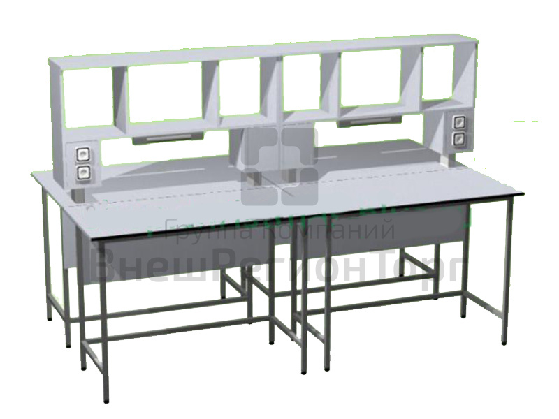 Столы островные химические лабораторные предназначены для комфортного проведения химических и физических исследований и работ стоя с применением лабораторных приборов, оборудования и инструментария в лабораториях различного типа (производственных, научных, учебных и т.п.). Столы обеспечены подачей воды и сливом, что позволяет проводить работы с применением различных не токсичных и безопасных растворов и жидкостей. Мебель выпускается ООО «Крисмас М» по ГОСТу 16371-2014