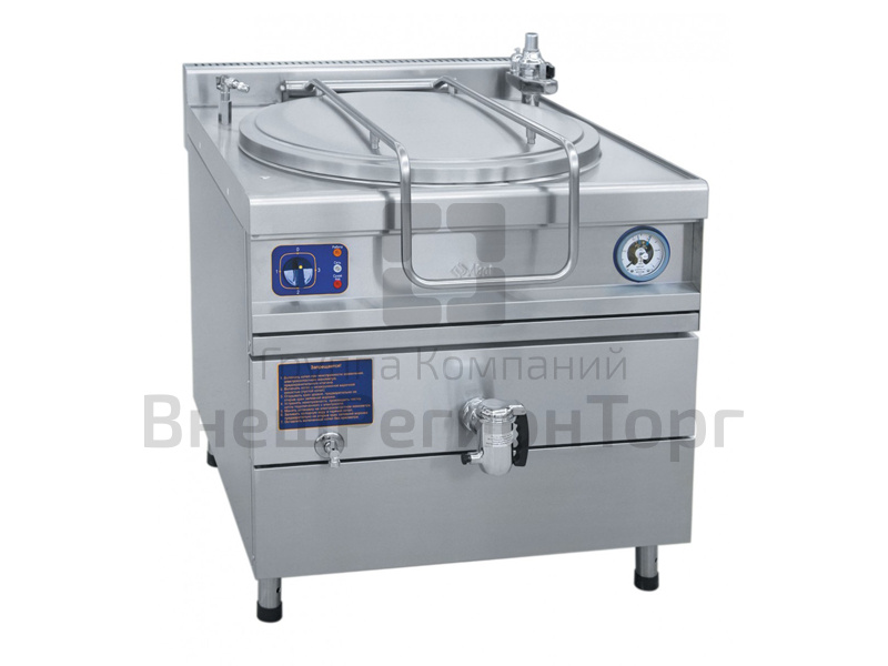 Объем котла составляет 100 литров. Три режима работы. Слив готового продукта осуществляется краном большого диаметра на лицевой панели. Удобная ручка крышки котла фиксируется в любом положении. Нагрев воды осуществляется способом "пароводяной рубашки". При отсутствии воды в "пароводяной рубашке" срабатывает автоматическое отключение нагрева. Регулируемые по высоте ножки.
