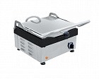 Рифленые верхняя и нижняя конфорки. На лицевой панели расположен лоток для сбора масла. Регулировка температуры жарочной поверхности до 270°С . Регулировка высоты верхней жарочной поверхности. Регулируемые по высоте ножки.