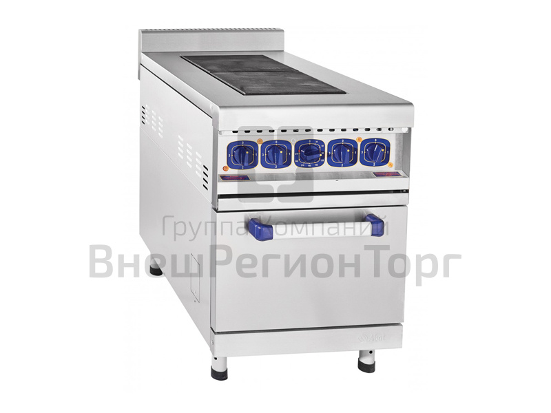 Предназначена для приготовления первых, вторых, третьих блюд в наплитной посуде, а также для жарки полуфабрикотов из мяса, рыбы, овощей и выпечки мелко штучных кулинарных изделий.Чугунные конфорки в качестве нагревательных элементов оснащены двумя ТЭНами, что обеспечивает быстрый и равномерный нагрев, а также гарантирует долгий срок эксплуатации конфорок. Площадь конфорок - 0,18 кв.м. Семипозиционные пакетные переключатели фирмы E.G.O позволяют производить плавную регулировку мощности конфорок. Конфорки образуют ровную поверхность, что обеспечивает удобное и легкое перемещение наплитной посуды. Внизу - жарочный шкаф с двумя или тремя противнями GN 1/1 размером 525х325 мм., изготовленные из нержавеющей стали. Духовка имеет раздельную регулировку мощности верхнего и нижнего блоков ТЭНов. Рабочий диапазон температуры духовки 20-2700 С, установленный аварийный терморегулятор предохраняет шкаф от перегрева 320 С. Плита имеет регулируемые по высоте ножки.