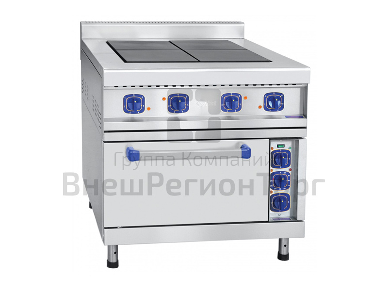 Плита электрическая, нерж.ст., 4 конфорки, духовка, конвекция, 840 x 950 x 950 мм