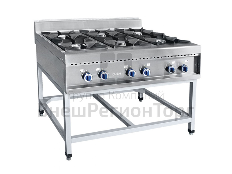 Плита газовая на подставке, нерж.ст., 6 конфорок, 120x90x94 см