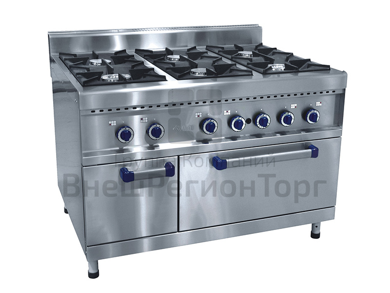 Плита газовая на подставке, нерж.ст., 6 горелок, духовка, 1200 x 899 x 944 мм