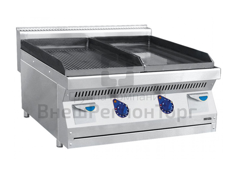 Все регуляторы и контрольные лампы находятся на передней панели. Терморегулятор позволяет поддерживать температуру воды от 30 С до 300 С. Поверхность для обжарки имеет желоб для стекающей жидкости и снабжена по периметру бортиком, позволяющим предотвратить разбрызгивание жира.