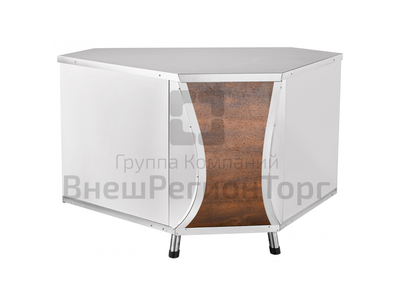 Модуль может быть изготовлен из "кашированного" (декорированного под дерево) металла. Цена прилавка будет такая же как из нержавеющей стали.