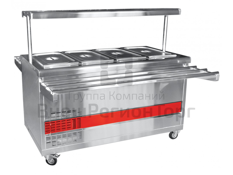Прилавок имеет охлаждаемую углубленную столешницу с гастроемкостями.