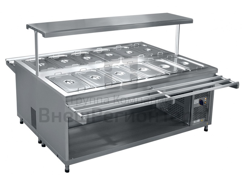 Подробное описание Салат-бар охлаждаемый, нейтр.шкаф, 1 полка + гастроемкости, L2120 мм