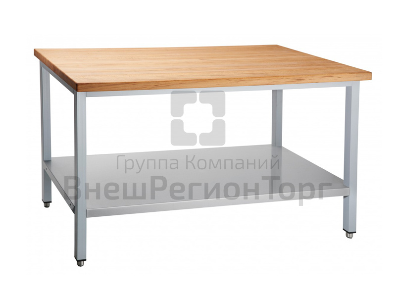 Стол кондитерский с деревянной столешницей, краш.каркас, 1 полка, 140х70х86 мм