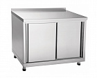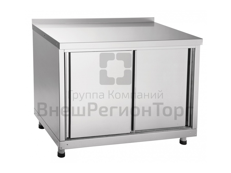 Стол оснащен двумя дверцами-купе и сплошной полкой, регулируемой по высоте. Все детали изготовлены из нержавеющей стали. Регулируемые по высоте ножки.