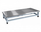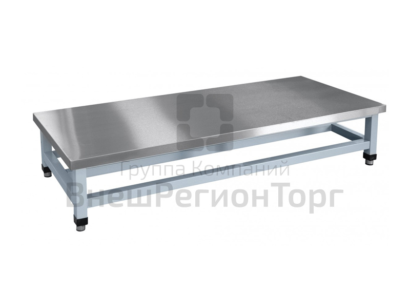 Столешница из нержавеющей стали. Разборный каркас из квадратной трубы, крашеный порошковой краской. Регулируемые по высоте ножки с резиновыми вставками.