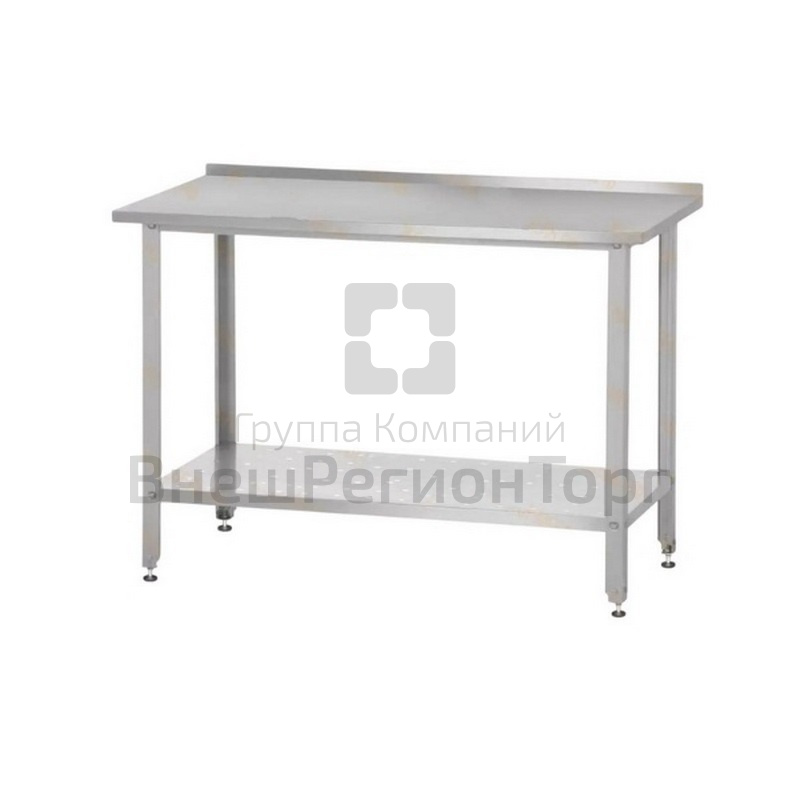 Стол производственный СПРб 860х1000х600 «Base» с перфорированной полкой (с бортом) применяется на профессиональной кухне для хранения или разделки продуктов.