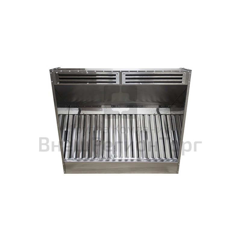 Зонт вытяжной изготовлен полностью из нержавеющей стали AISI 430 толщиной 0,8 мм. Комплектация: фланец сливной - 1 шт, фильтр лабиринтный 400 мм - 4 шт. Внизу вытяжки имеется герметичная ванна, куда стекает масло, жир, вода с фильтров. Ванна имеет сливное отверстие для санитарной очисти. Поставляется в собранном виде.
